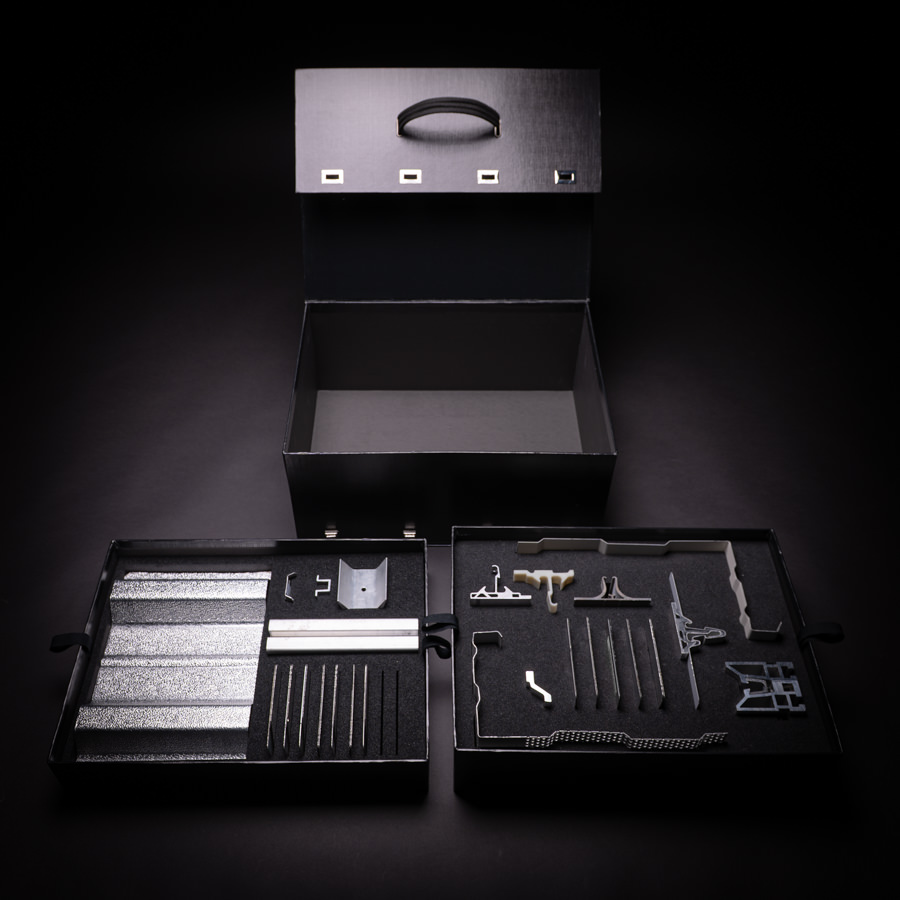 Elegante, compatta e funzionale, questa valigetta campionario è progettata per presentare con stile e completezza una selezione di profili. Realizzata con materiali di alta qualità e finiture raffinate, offre un’organizzazione interna curata nei minimi dettagli, con sagome perfettamente sagomate nel foam per ogni componente. Ideale per architetti, designer e professionisti del settore, questa valigetta unisce estetica e praticità, rendendo ogni presentazione un’esperienza di valore.