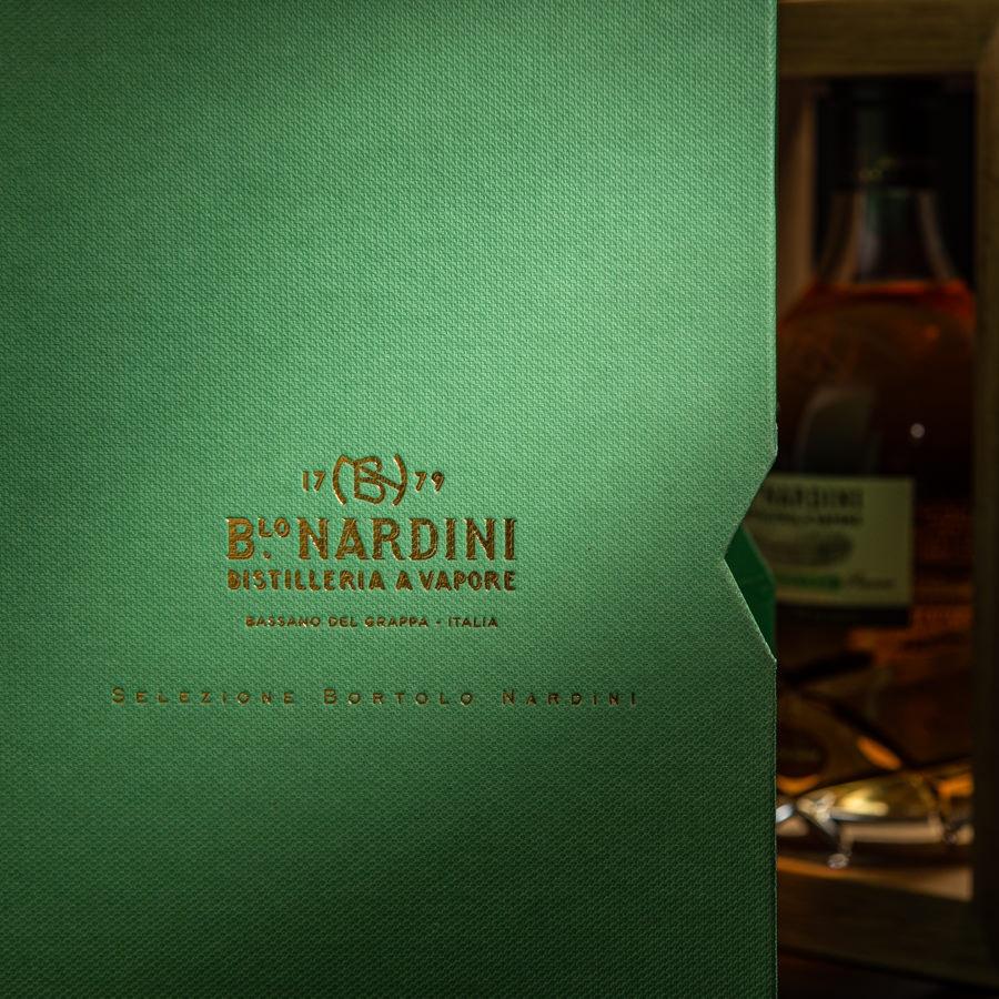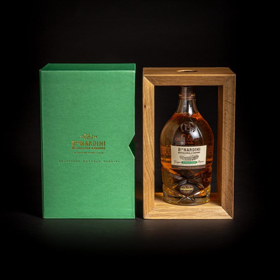 Preziosa ed elegante confezione per una grappa invecchiata realizzata in collaborazione con una storica e prestigiosa distilleria.